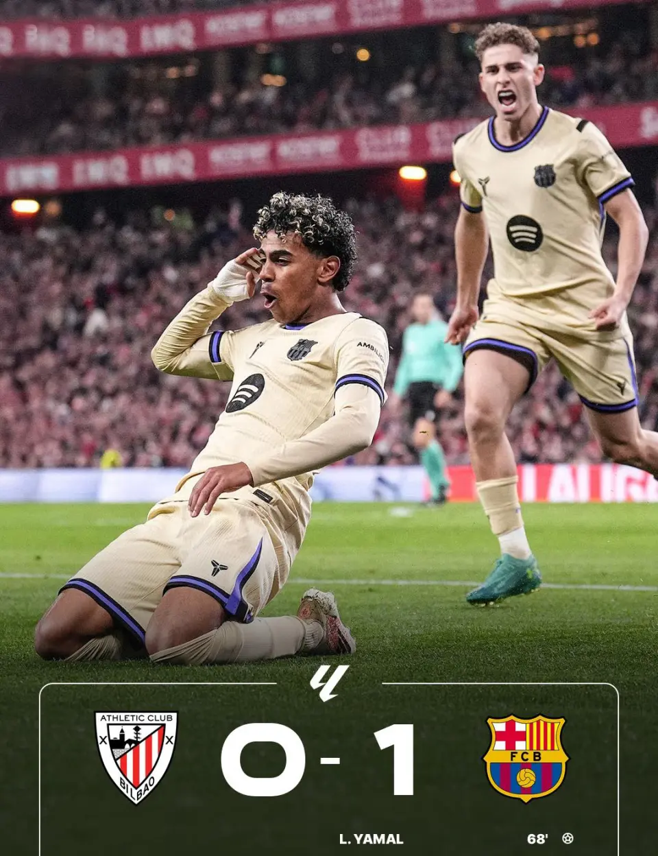 最终,凭借亚马尔的关键进球,巴萨1-0击败毕尔巴鄂竞技,拿下联赛三连胜,并继续以4分优势领跑西甲积分榜。