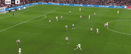 此后比赛逐渐进入拉锯战。第34分钟,拉什福德左路送出直塞,坎塞洛内切形成机会,但趟球稍大,勉强起脚射门力量不足,被门将乌奈·西蒙轻松没收。上半场双方虽然都有机会,但始终未能打破僵局,0-0进入中场休息。
